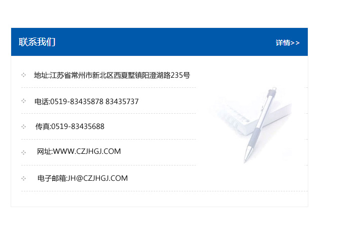 傳真:0519-83435688    郵編:213135    網址:WWW.czjhgj_com.ajdacheng.com    電子郵箱:JH@czjhgj_com.ajdacheng.com